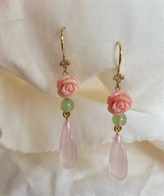 Retro Pink Sterling Silver Overgild Water Drop Rose Drop Earrings AC1079