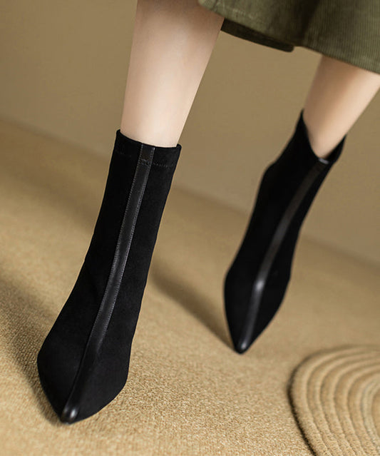 2024 Splicing Stiletto Boots Khaki Suede Pointed Toe RS011