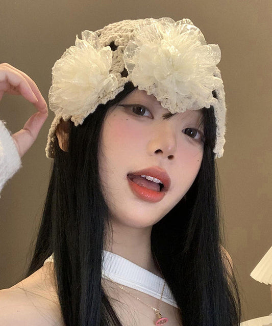Boutique Beige Floral Hollow Out Knit Bonnie Hat WB027