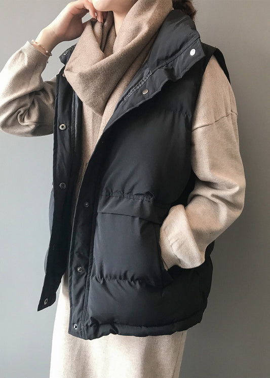 Casual Loose Beige Button Pockets Fine Cotton Filled Vest Sleeveless WD020
