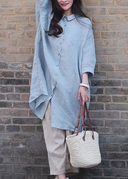 Casual Loose Pink Peter Pan Collar Mid Cotton Shirt Top Spring TJ029