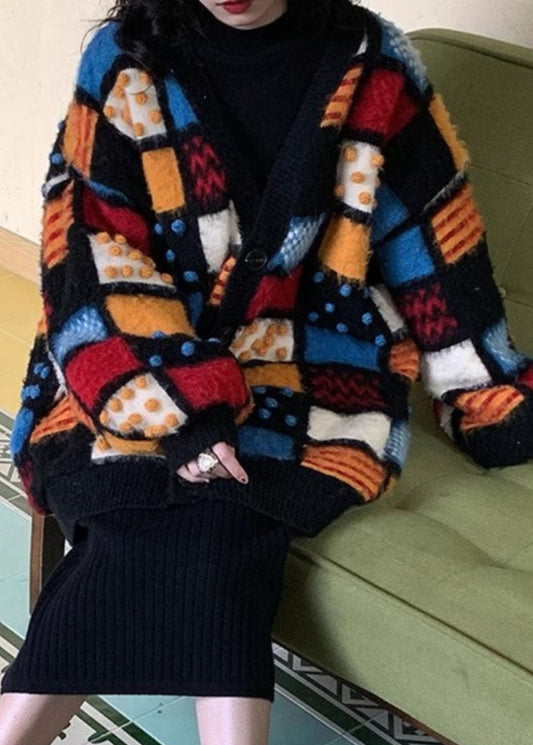 American Style V Neck Plaid Button Woolen Cardigan Fall WE028