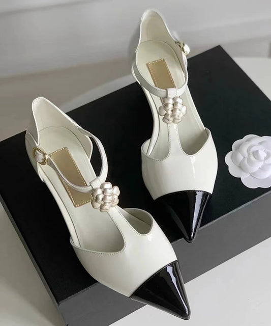 Comfy Splicing Wedge Sandals Black Cowhide Leather Pointed Toe JJ006