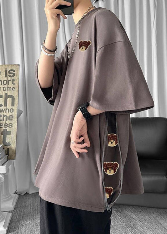 Cool White Embroideried Zippered Cotton Mens T Shirt Designer Summer WA004