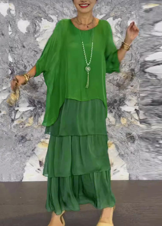 French Grey O Neck Solid Chiffon Dresses Batwing Sleeve QA022
