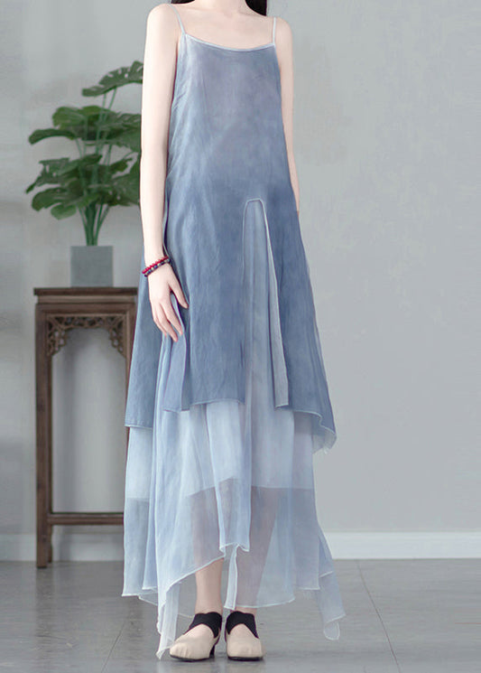 French Khaki Asymmetrical Patchwork Cotton Spaghetti Strap Dress Sleeveless LK010
