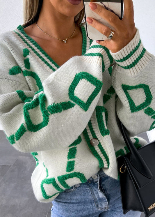 French Pink V Neck Graphic Embroidered Knit Cardigan Fall QY021