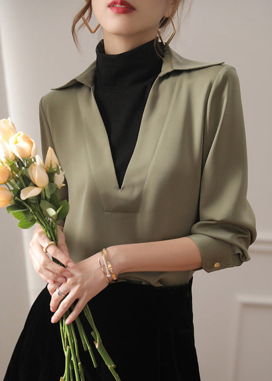 French White Peter Pan Collar Versatile Silk Shirts Spring YZ025
