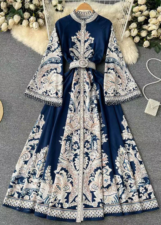 French White Print Sashes Cotton Shirts Dress Flare Sleeve TR034