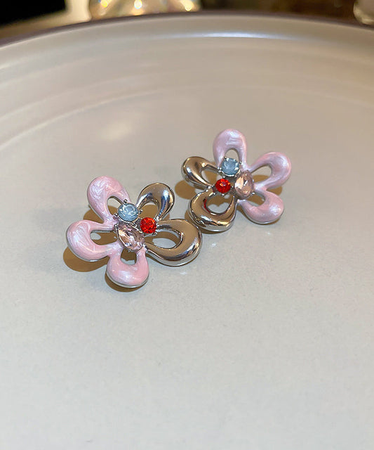 Glaze Zircon Hollow Cute Floral Drip Stud Colorblock Out Alloy