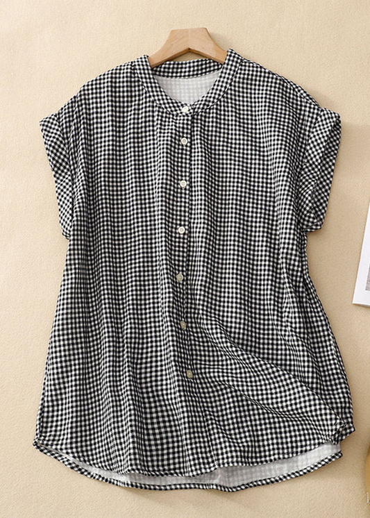 Grace Size Stand Collar Plaid Button Cotton Shirts Summer QB030