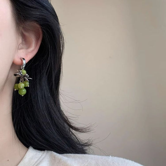 Grape Original Earrings Stud Design Purple Glass Alloy