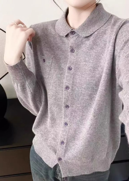 Handmade White Peter Pan Collar Pockets Solid Cotton Knitted Cardigans Fall QP009