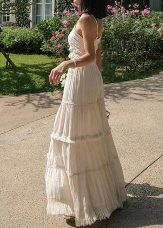 Italian Apricot Tasseled Patchwork Cotton Two Pieces Set Sleeveless XX093