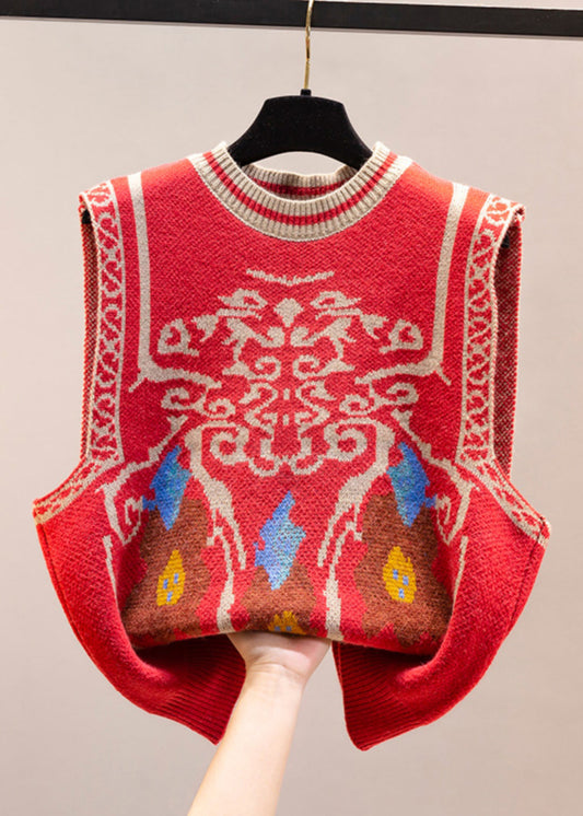 Jacquard Red O-Neck Cozy Loose Knit Sweater Winter WM019