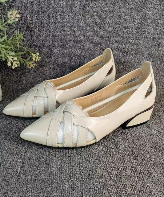 Black Chunky Faux Leather Soft Pointed Toe Peep Toe DD1006