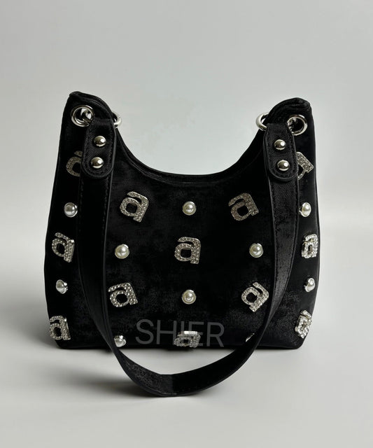 Korean Version Chain Linked Bow Nail Bead Tote Handbag IU012