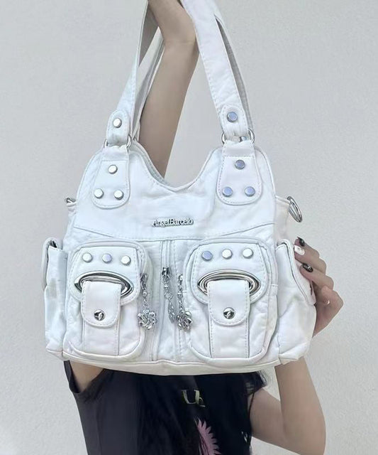 Fashion Milk White Cute Little Doll Faux Leather Mini Tote Handbag MM003