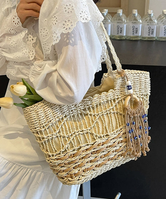 New Casual Khaki Versatile Grass Woven Shoulder Bag HJ1012