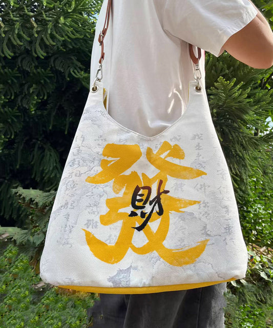Casual White Print Large Capacity Canvas Satchel Handbag QF009
