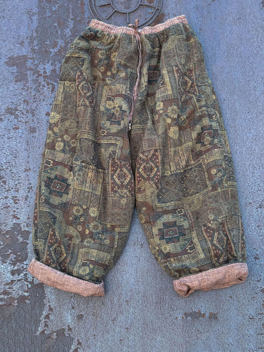 Women Winter Retro Flower Cotton Linen Wide-leg Pants QM002
