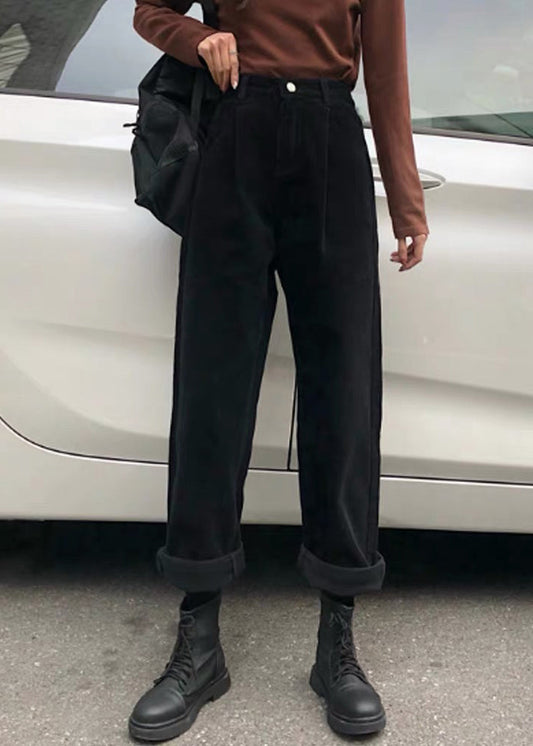 Women Khaki Pockets High Waist Warm Fleece Pants Fall TU032