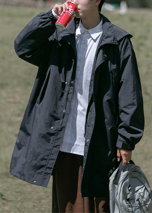 Casual Army Green Hooded Pockets Oversized Cotton Mens Coats Spring YQ003
