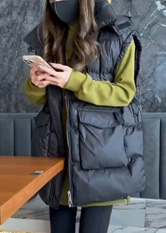 Loose Coffee Zip Up Pockets Cotton Filled Waistcoat Sleeveless YW015