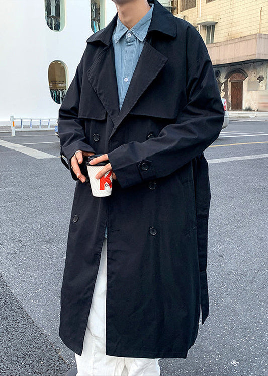 French Khaki Double Breast Tie Waist Cotton Mens Long Trench Coat Spring YQ002