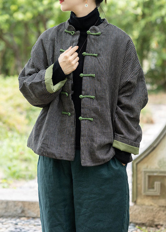 Retro Khaki Stand Collar Oriental Button Fine Cotton Filled Coat Winter TZ044