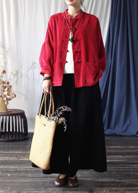 Vintage Red Chinese Button Pockets Corduroy Jackets Spring TJ015