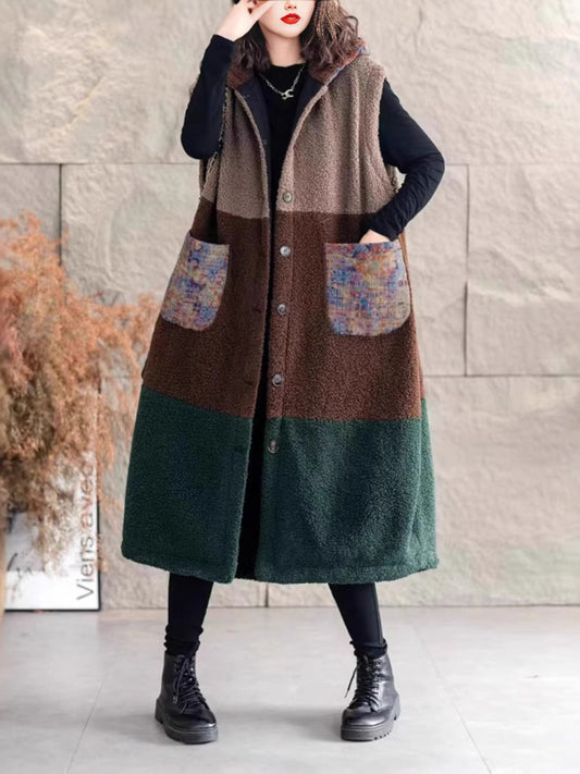 Winter Casual Fleece Colorblock Hooded Vest Coat WG018