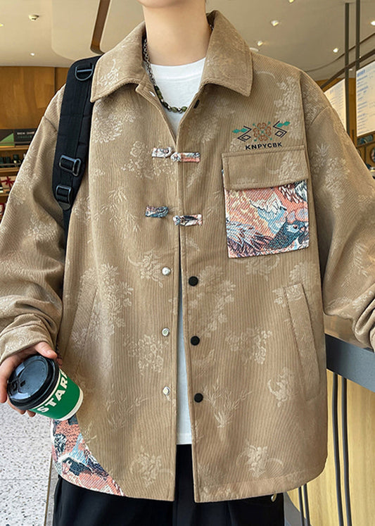 Unique Peter Pan Collar Button Print Denim Mens Coats Fall WA033