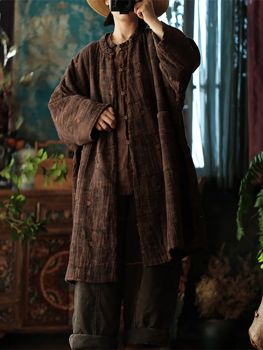 Winter Retro Thick Print 100%Ramie Coat AV1046