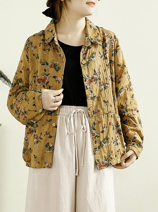 Women Autumn Artsy Flower Cotton Shirt Coat AK1038