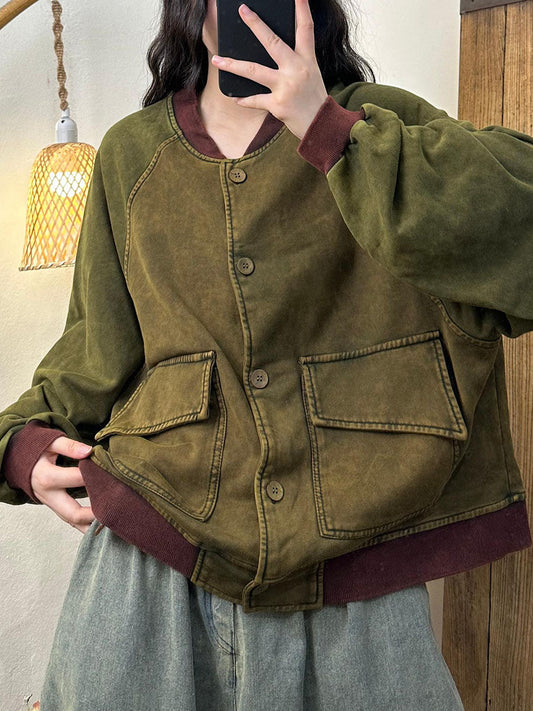 Women Autumn Casual Colorblock Cotton Baseball Jacket AV1005