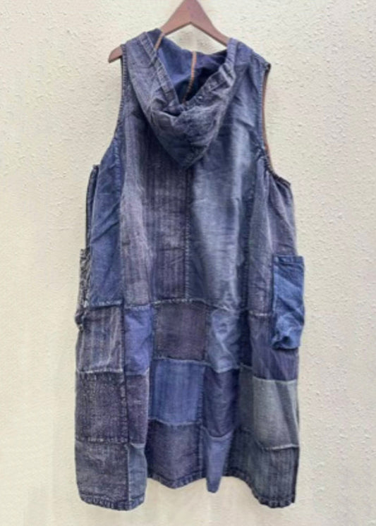 Vintage Colorblock Hooded Pockets Cotton Waistcoat Sleeveless GH1063