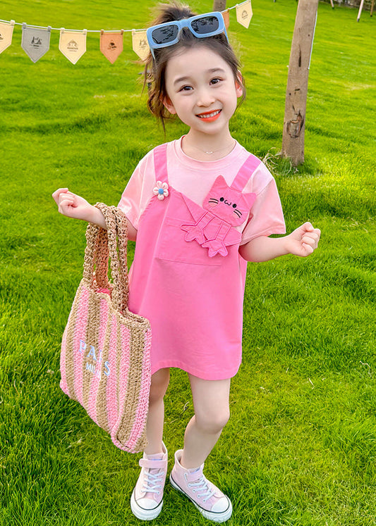New Pink O Neck False Two Pieces Cotton Girls Dress Summer EW044