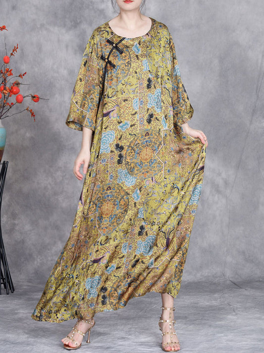 Women Artsy Summer Flower Buckle Loose Dress OP1001