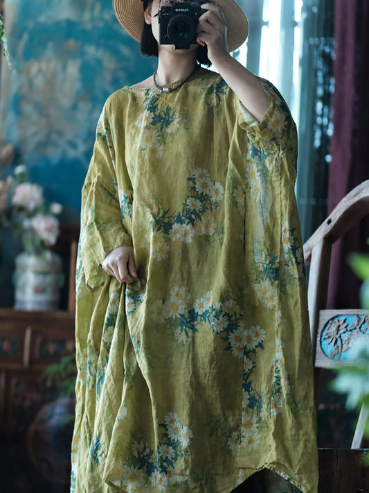 Women Summer Vintage Floral Linen Loose Dress PP1048