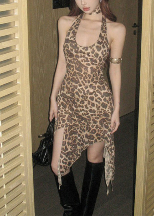 Sexy Leopard Halter Asymmetrical Design Dress Summer EE1018