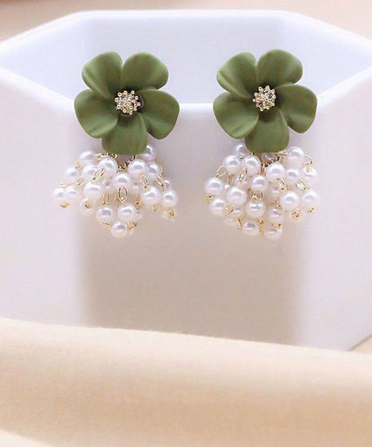 Floral Drop Alloy Yellow Earrings Stylish Pearl Tassel