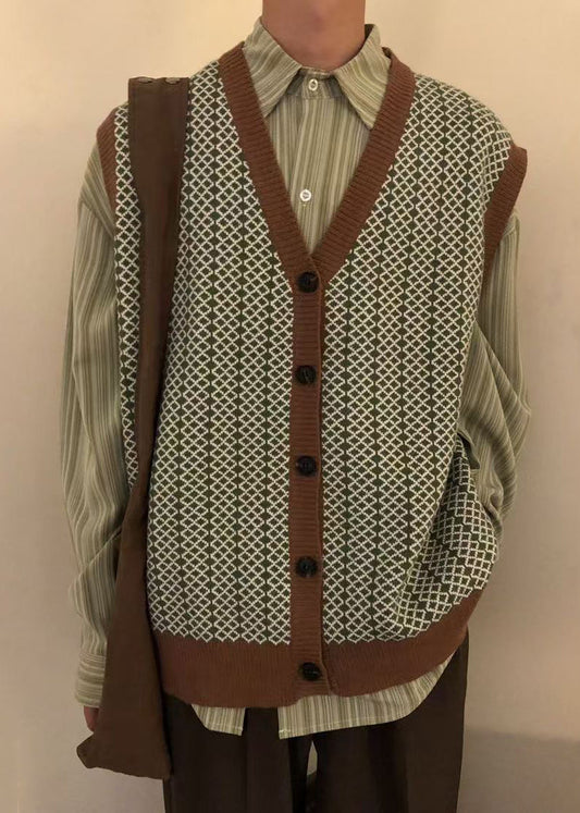 Chic Plaid Button Mens Knit Pullover Vest V Neck Sleeveless RJ029