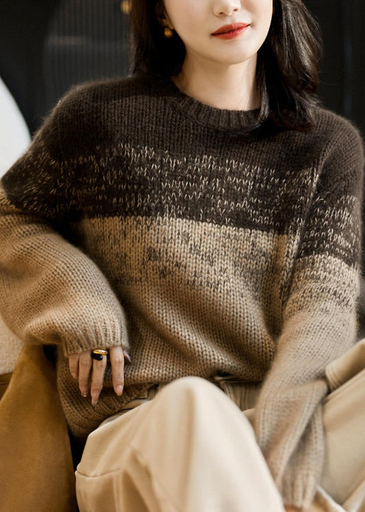 Beautiful Pink Gradient O Neck Thick Woolen Knit Pullover Winter RS040