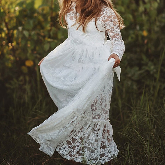 Girls' Flower Kids Solid Long Colored Girl Dress