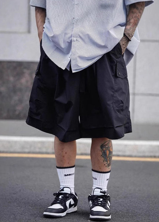 Pockets Letter Dye Tie Black Summer Men Cotton Shorts