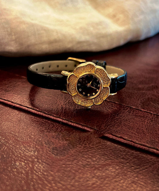 Leather Black Organic Glass Alloy Watches Quartz Fine Movement
