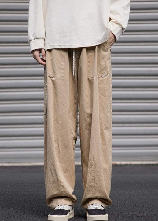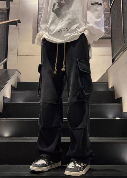 Drawstring Navy Pants Pockets Solid Mens Cotton Spring Loose