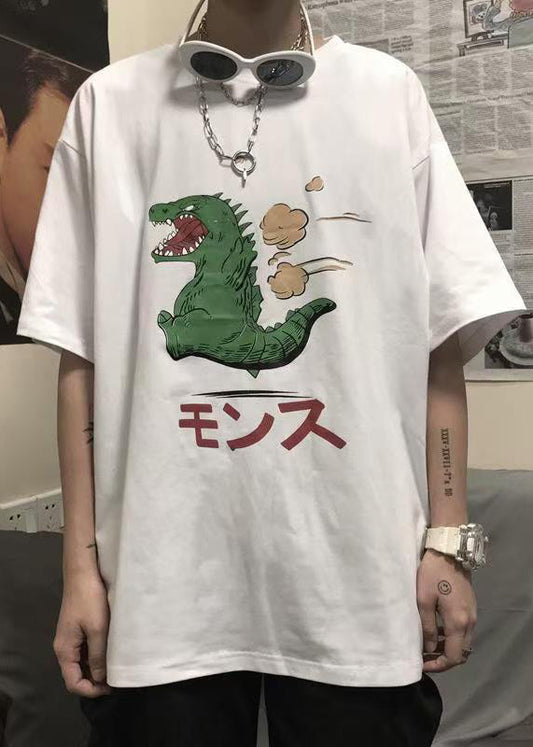 T Print Neck Shirts Sleeve Men Loose O White Half Cotton