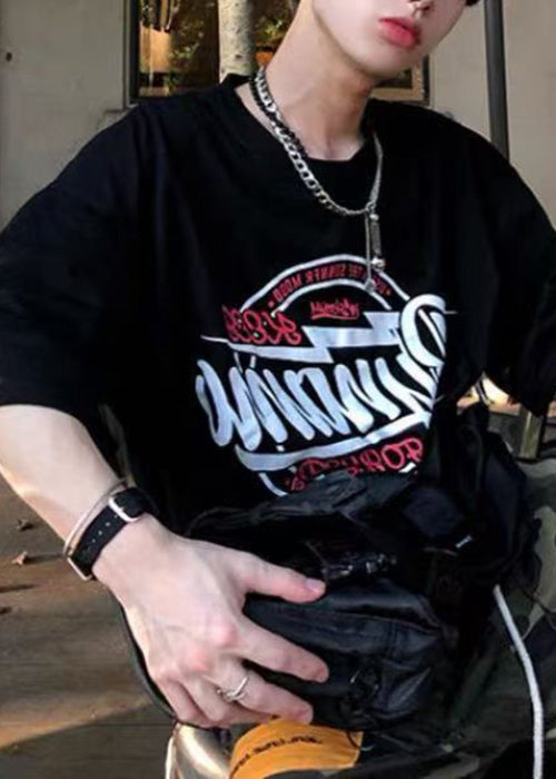 Mens Cozy Simple Graphic Summer Black Tees Cotton Print